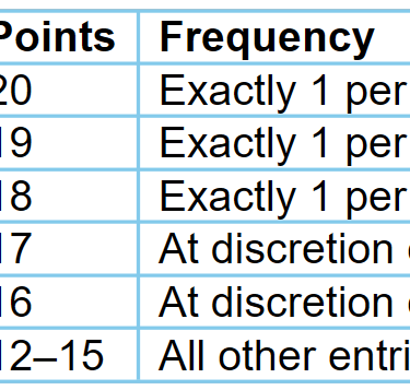 To keep the league competitive but fair, Judges are asked to use the following table as a quick reference for the 20% guidance during the "Holding" process: